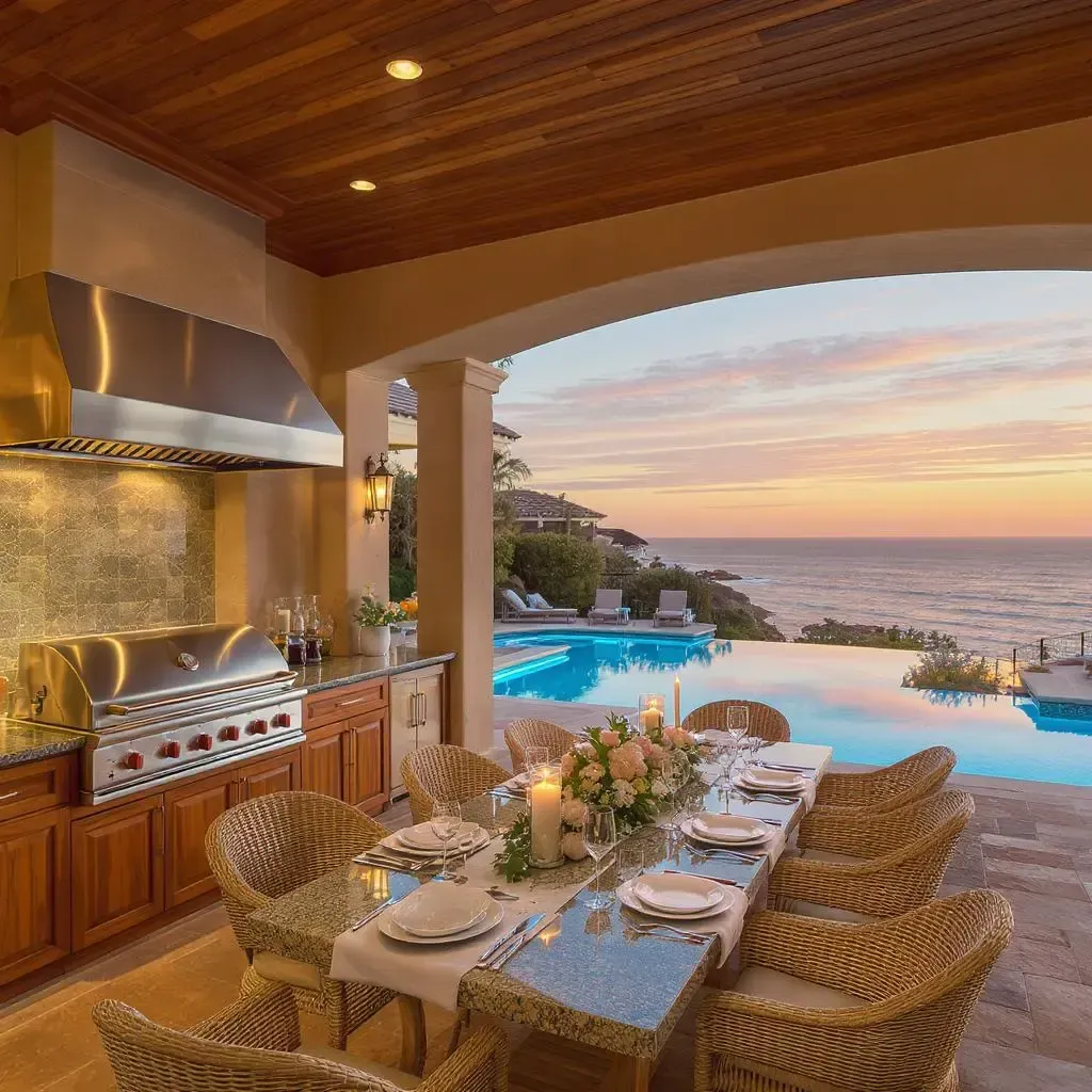 The expansive gourmet kitchen is truly a chef’s dream, featuring top-of-the-line stainless steel appliances, sleek custom cabinetry, and ample counter space ideal for crafting everything from casual meals to elegant dinner parties. Whether you’re preparing a quiet brunch or entertaining a crowd, this stunning kitchen combines function with flair—perfectly suited for coastal culinary creativity.